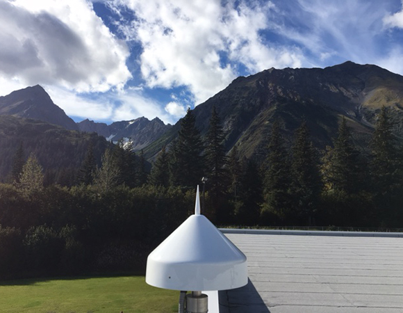 The new National Geodetic Survey (NGS) CORS station installed by UNAVCO in Seward, Alaska. (Photo/John Sandru, UNAVCO).